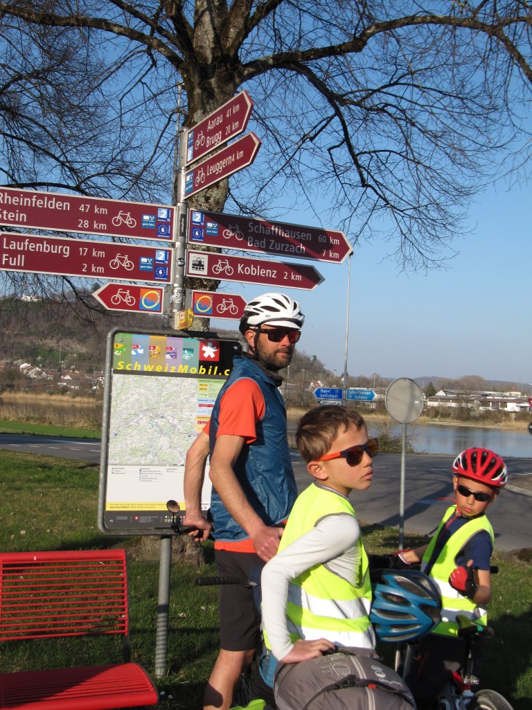 Après presque 2 semaines, nous voici en Allemagne, sur les bords du Rhin. Nous avons suivi l’itinéraire prévu initialement, le long des routes cyclables nationales suisses n°5 et n°8, avec quelques petites variations en fonction des possibilités d’hébergement.
