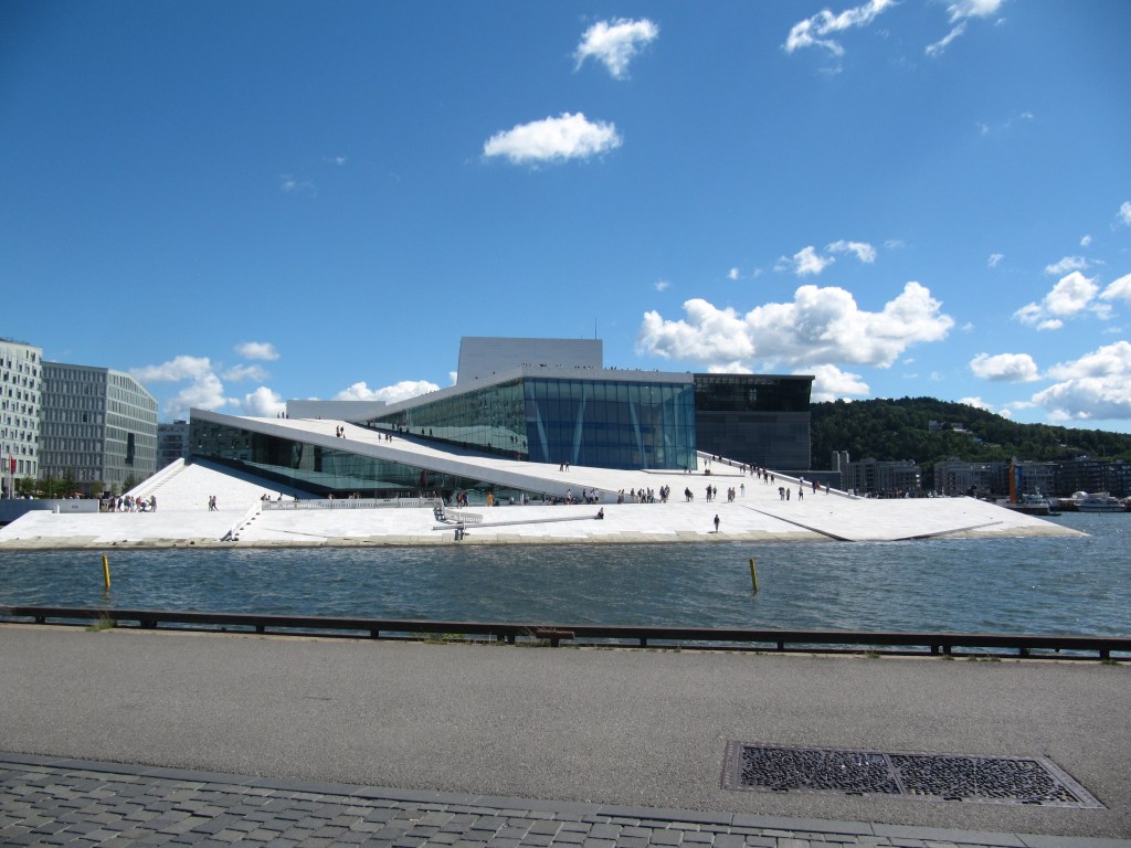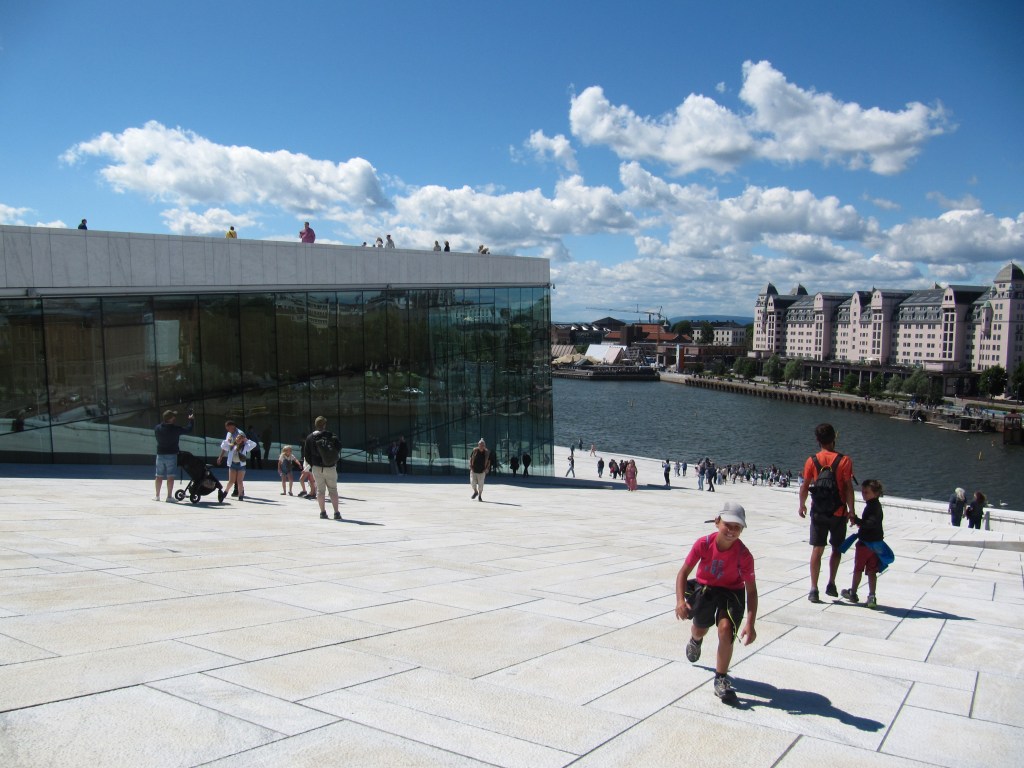 Ensuite, nous nous sommes dirigés vers un quartier récent et moderne au bord de l’eau: il y a le musée Munch et surtout le bâtiment de l’opéra, sur lequel on peut monter pour admirer le fjord.