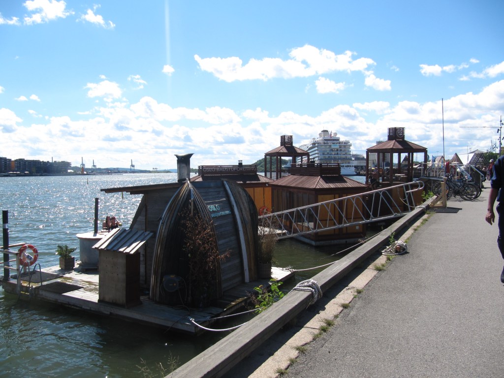 Nous avons mangé devant l’opéra, sur un quai animé qui mène aux car-ferries, ( nous avons vu le DSDF le bateau que nous allons prendre pour aller au Danemark). Il y avait de nombreux saunas flottants.