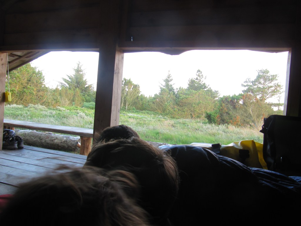 Au Danemark, nous n’avons pas le droit de bivouaquer dans la nature. En revanche, c’est possible dans un réseau de petites cabanes réparties dans tout le pays. Ces Shelters sont construits en bois et sont fermés sur trois côté. Les espaces où on trouve les shelters sont parfois équipés d’un point d’eau, de toilettes (des fois sèches) et d’un endroit pour faire un feu. L’accès aux shelters est réservé aux randonneurs à pied, à vélo, à cheval et aux kayakistes.