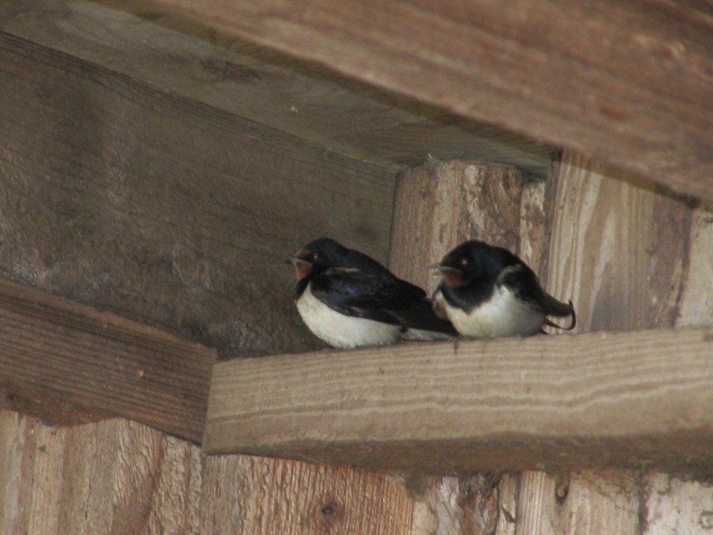 Notre premier shelter, lors de la première nuit au Danemark. Nous avions choisi de planter la tente à côté. La mer est à 10 mètres dans le dos du photographe…!Shelters dans le port de Stubbekøbing (nous n’y avons pas dormi, mais ça aurait été un bel endroit pour passer la nuit)Shelter au coeur d’un petit village, face à un petit étang, qui nous a permis de nous sécher et de dormir au sec après quelques kilomètres sous la pluieLe shelter où nous sommes arrivés de nuit après la traversée depuis Oslo Shelter dans la forêt, à 200 mètres de la mer, avec point d’eau et bois à disposition pour faire du feu, on adore!On aime tellement les shelters qu’on s’y arrête aussi pour les pauses pique-nique…On profite de la nature depuis notre litLe même endroit, vu de l’extérieur, le matin.Un autre avantage des shelters, nous étions bien contents de les trouver après une journée dans le vent pour se mettre à l’abri, comme dans celui-ci.Les shelters sont également l’occasion de faire des rencontres avec d’autres voyageurs à vélo. Parfois il faut aussi cohabiter avec les habitants permanents du lieu, comme ces 2 hirondelles (et leurs petits) qui avaient leur nid dans un shelter où nous avons dormi!